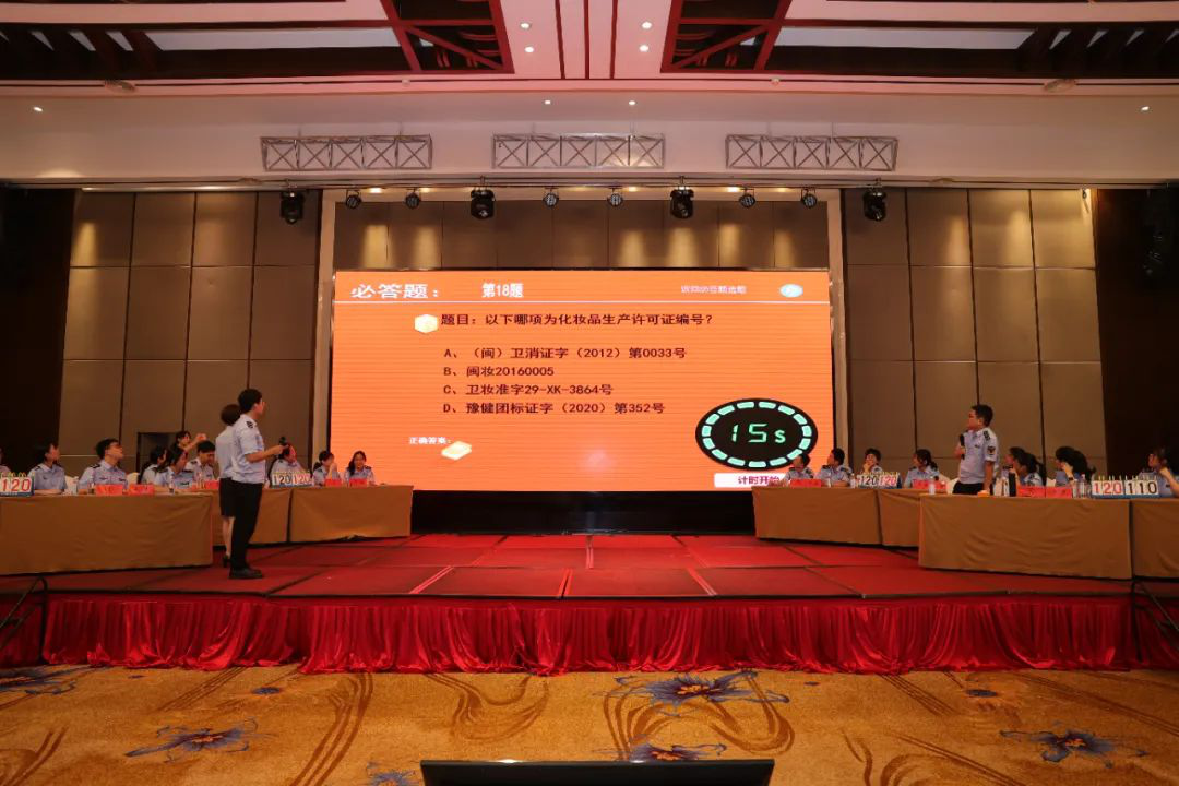 决赛采用团队积分制,设置必答题、抢答题、风险题以及个人赛等环节。决赛现场,参赛选手个个精神饱满、沉着应对,不仅拼专业、拼经验,还要积极拼脑力、拼手速、拼“智库”,展现了我市“两品一械”监管队伍扎实的理论功底和良好的精神风貌。为了扩大竞赛覆盖面,提升竞赛效果,现场还设置了观众抢答环节,观众反应热烈,现场气氛十分活跃。