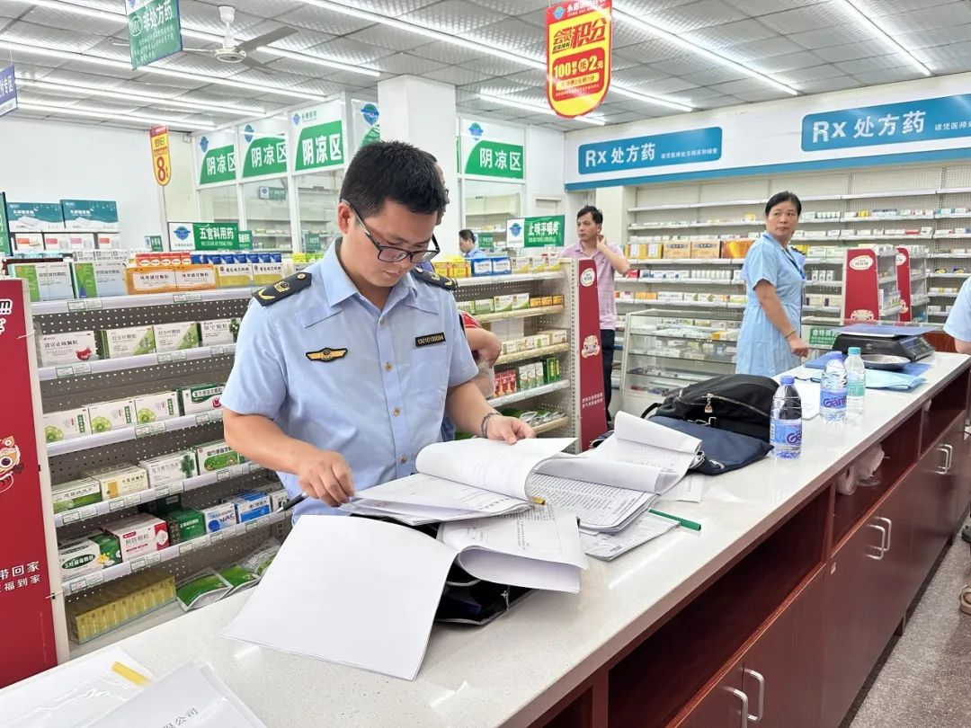 来自晋安区9个市场监管所的13名基层药品监督员分赴3家零售药房开展现场检查,现场检查主要在药房的质量缺陷,现场拍照取证。