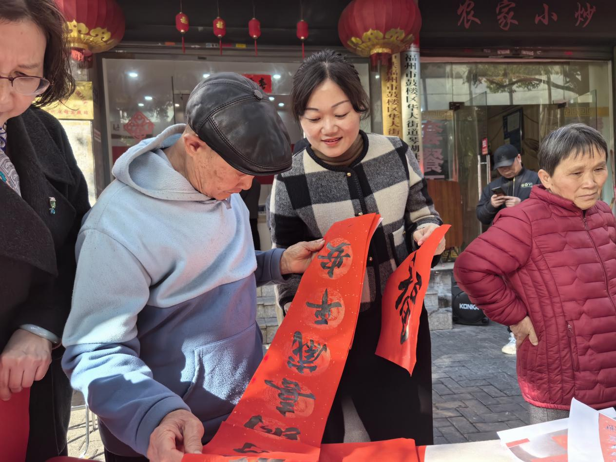 活动现场,省中心与分中心的书法爱好者们挥毫泼墨,一副副寓意吉祥的春联、喜庆的福字在笔下熠熠生辉,红纸黑字间承载着对美好生活的共同期许。志愿者们分别将饱含心意的春联与福字送至社区群众手中,让暖意与关怀直抵人心。