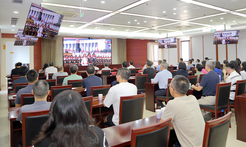 9月3日上午,省药监局组织集中观看中国人民抗日战争暨世界反法西斯战争胜利80周年阅兵活动的现场直播,设主会场和4个分会场,省局系统全体干部、职工共计450余人集中观看。