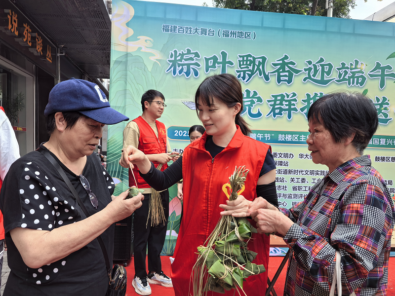 今年的活动特别安排了“暖心环节”。大家将煮好的百余个“爱心粽”送到快递员、环卫工等新业态群体手中,给城市的基层劳动者们送上节日的诚挚慰问。