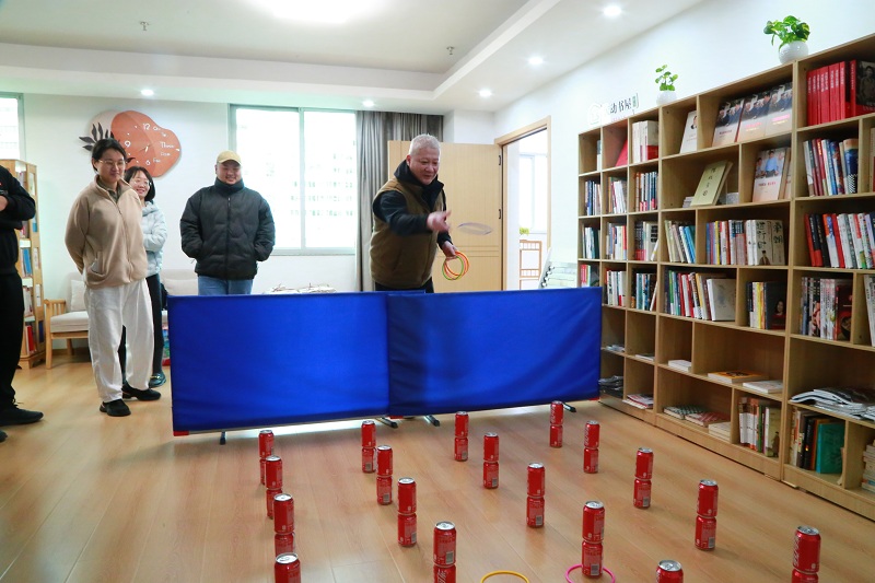 活动现场布置得喜庆温馨,充满了欢声笑语。干部职工们有序排队,手持趣味套圈道具,瞄准并投向象征“团圆”与“快乐”的可乐瓶。本次活动还特别开设“线上猜灯谜”活动,让各分中心或在外检查的职工共同参与,一起感受节日的浓厚氛围。