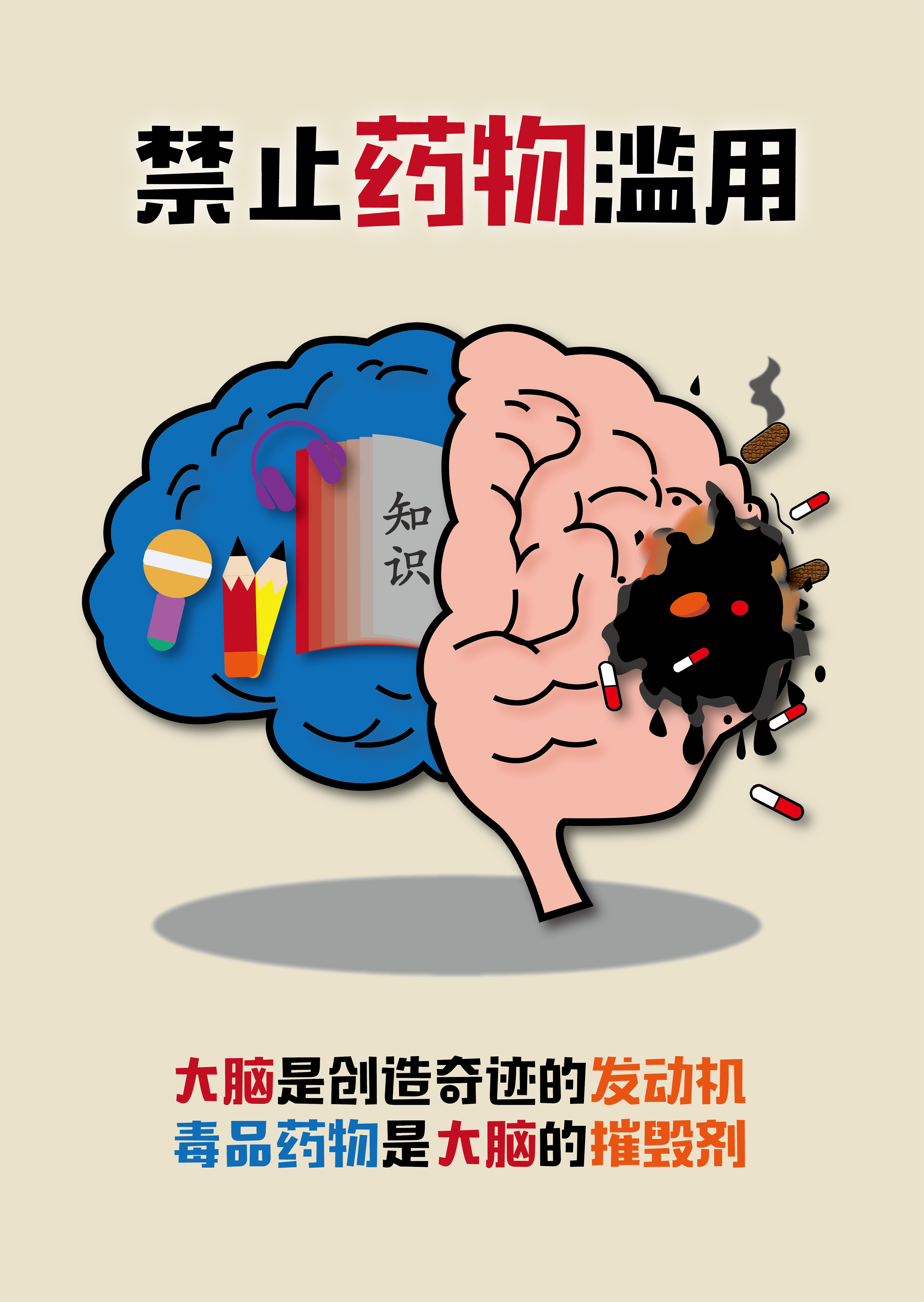 福建省大学生“两品一械”普法创意大赛获奖作品系列展播海报组三等奖:大脑是创造奇迹的发动机 毒品药物是大脑的摧毁剂