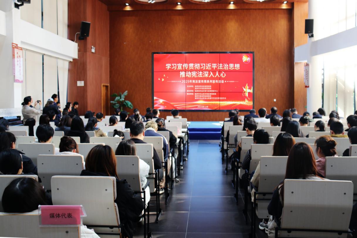 为深入学习贯彻习近平法治思想,全面落实宪法宣传教育工作要求,12月4日,福建省药品监督管理局联合福州市市场监督管理局走进福州市仓山区金山街道中天社区居委会,以“学习宣传贯彻习近平法治思想,推动宪法深入人心”为主题,共同举办2025年宪法宣传周系列宣传活动。福建省药品监督管理局党组成员、副局长张文春出席活动并致辞。省药监局机关处室及直属单位代表、福州市及仓山区市场监管局相关代表、基层监管人员、医药行业代表、高校学生、社区居民及媒体代表等100余人参加活动。