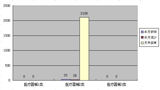 本月二类医疗器械注册证(首次注册)增加33本,本月减少26本,期末合计2108本。