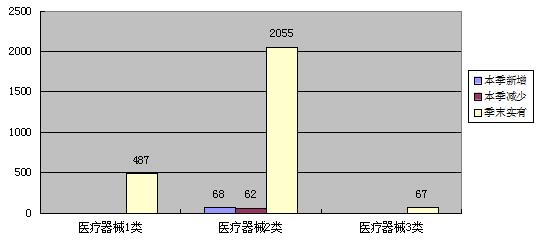 本季核发二类医疗器械注册证(首次注册)68本,注销62本,期末合计2055本。